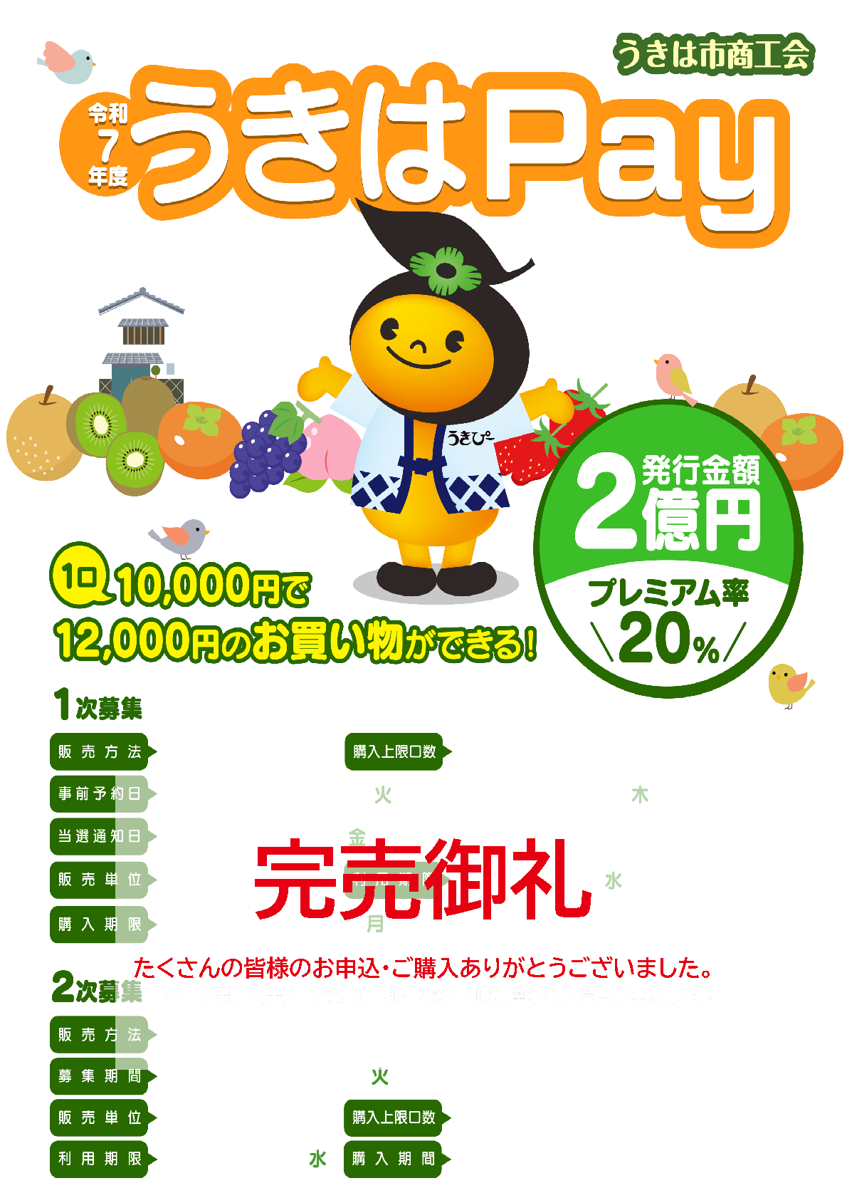 ご利用にはスマートフォンアプリ「うきはPay」が必要です。